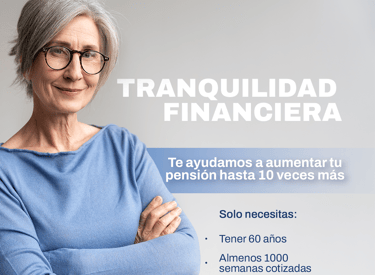 Creé un diseño que inspira confianza, mostrando una mujer adulta feliz junto a la promesa de tranquilidad financiera.